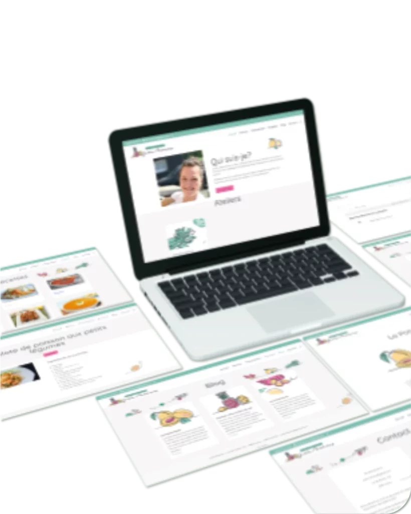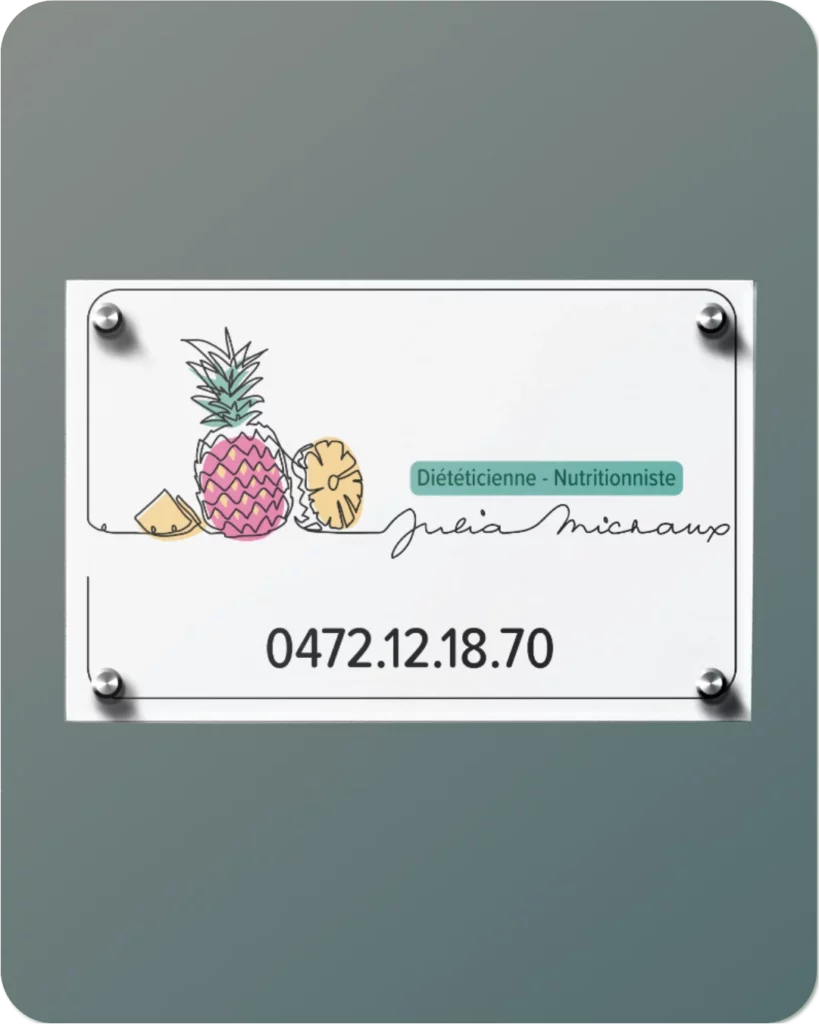 Julia Michaux est une diététicienne. Elle souhaitait une enseigne pour son cabinet de consultation, un site web et des cartes de visite.