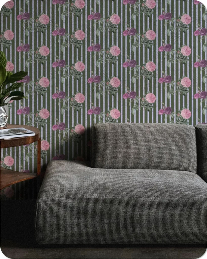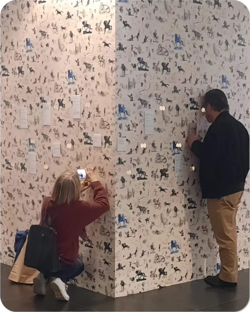 Pour cette exposition, j’ai notamment créé deux papiers peints. L’un à partir d’esquisses de l’artiste, l’autre plus fleuri pour tenter de représenter l’époque et créer une ambiance propre.