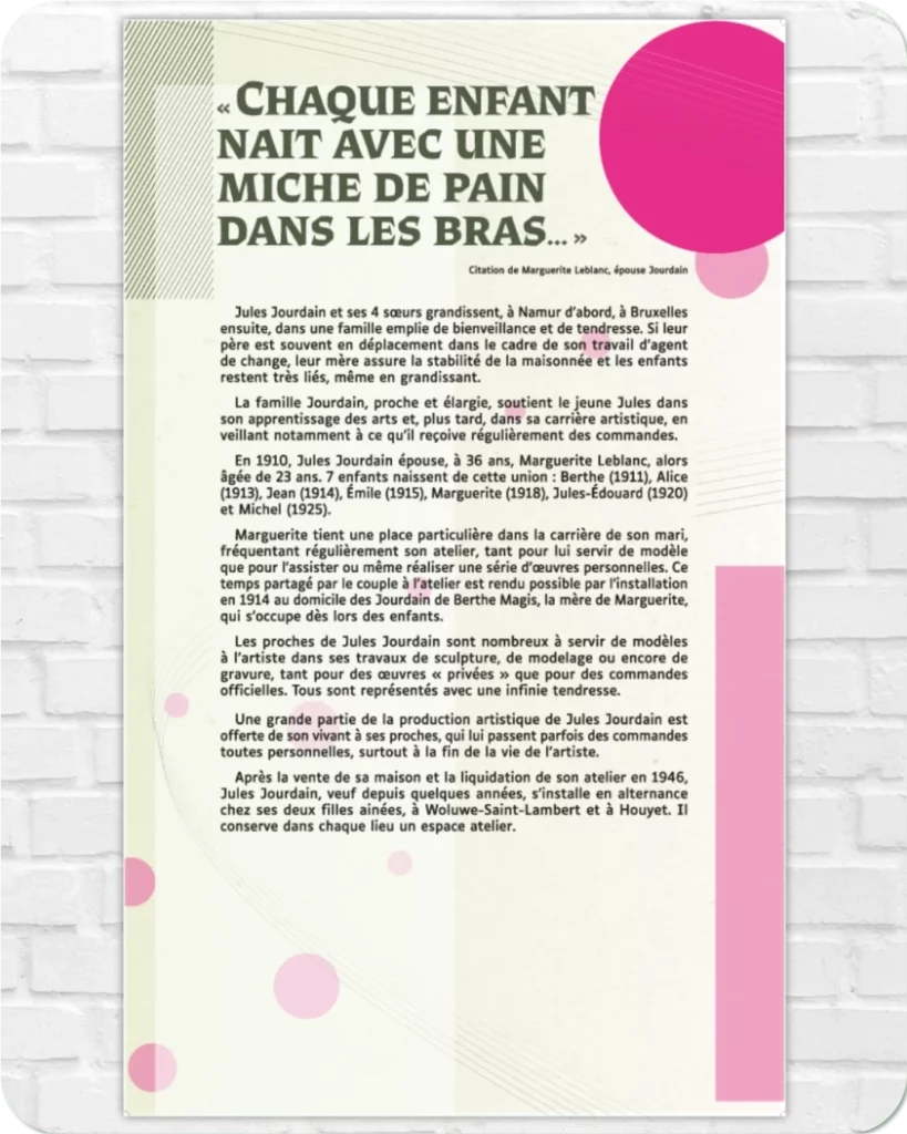 Cette exposition a permis de mettre en avant les différentes facettes de l’artiste: passant du sensible au religieux, du patriotique au familial, numismatique et monumental.