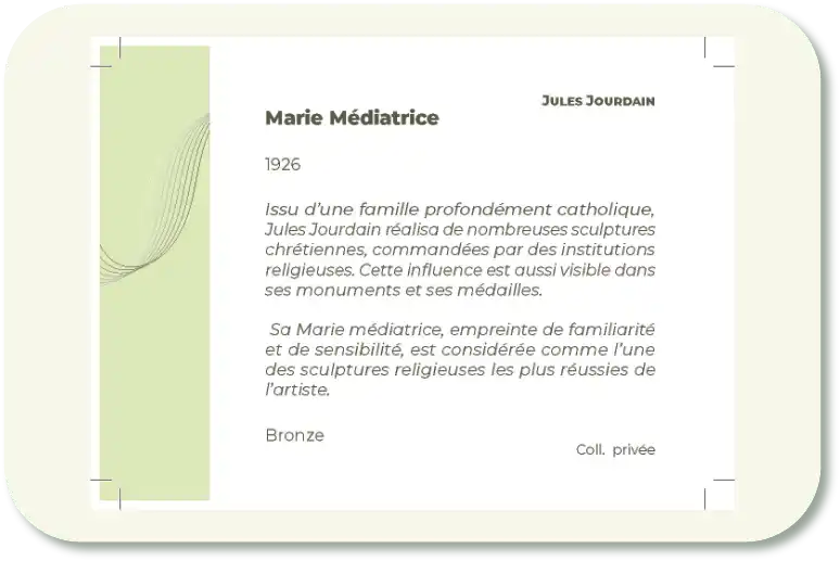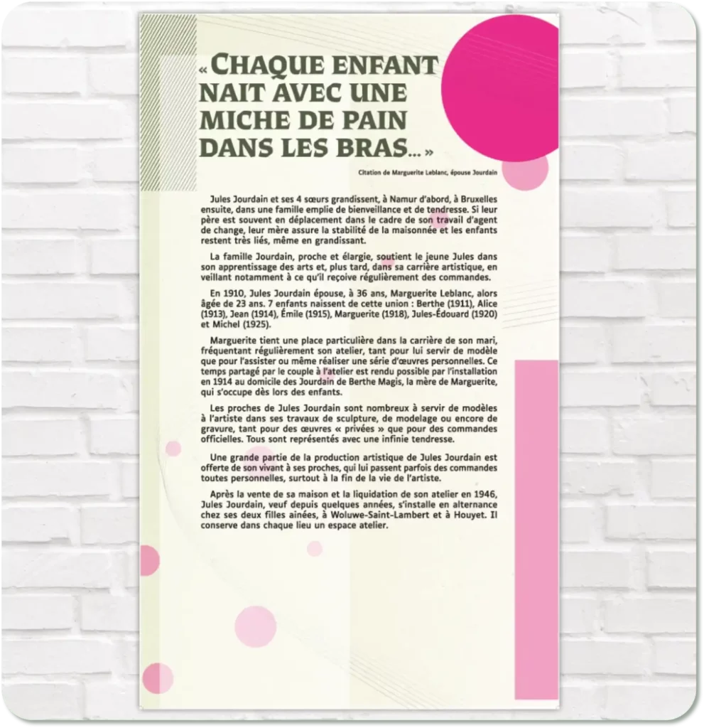Cette exposition a permis de mettre en avant les différentes facettes de l’artiste: passant du sensible au religieux, du patriotique au familial, numismatique et monumental.